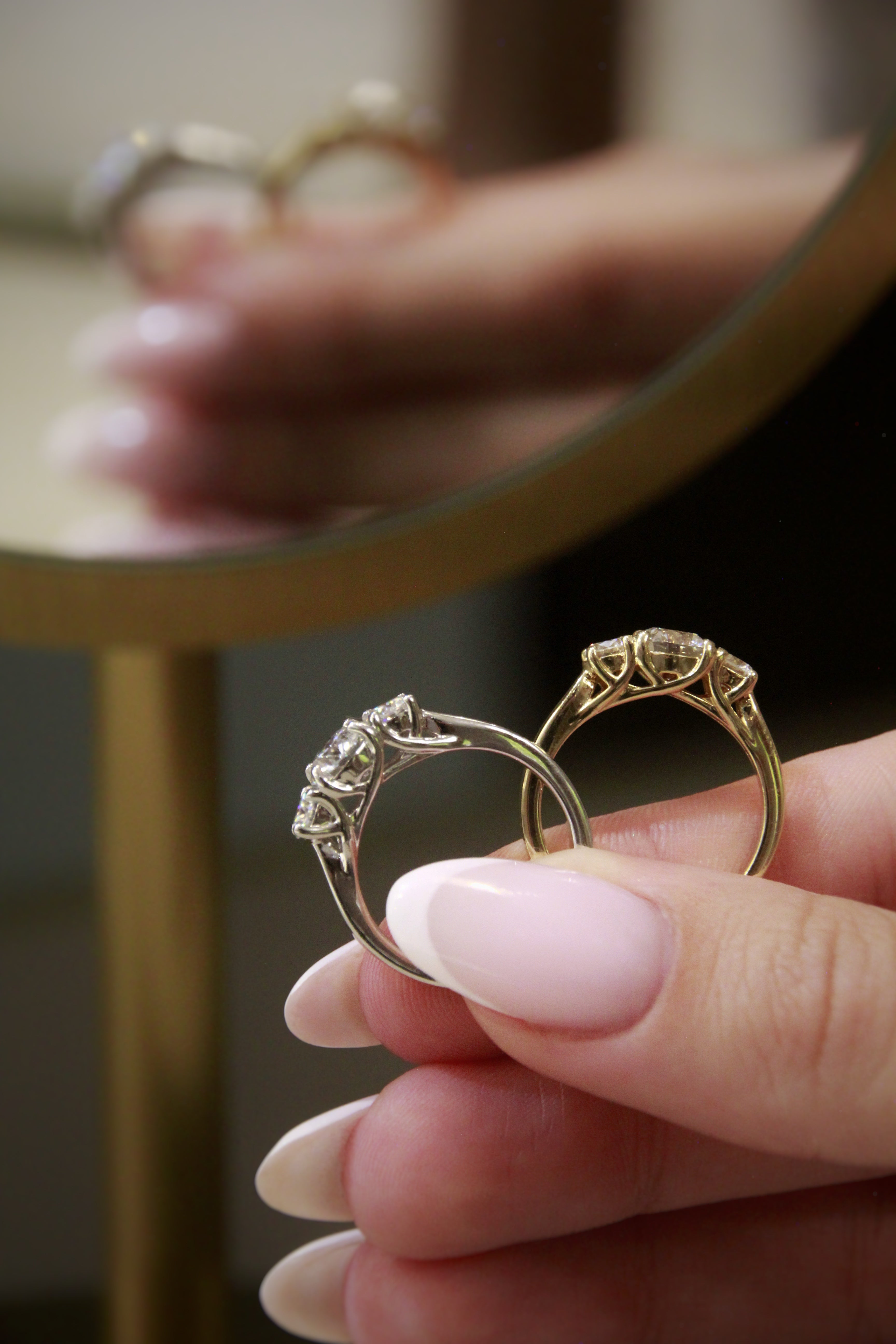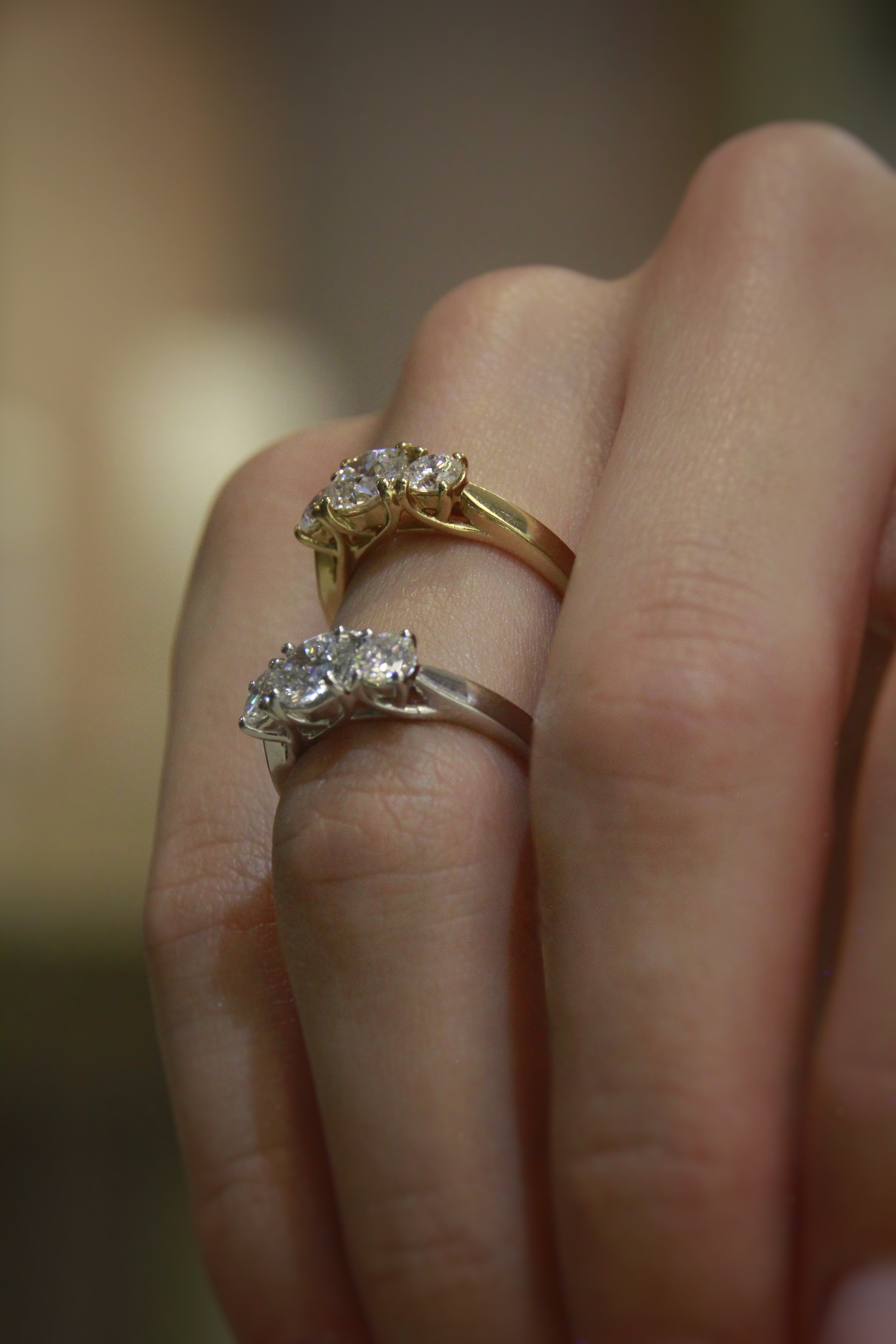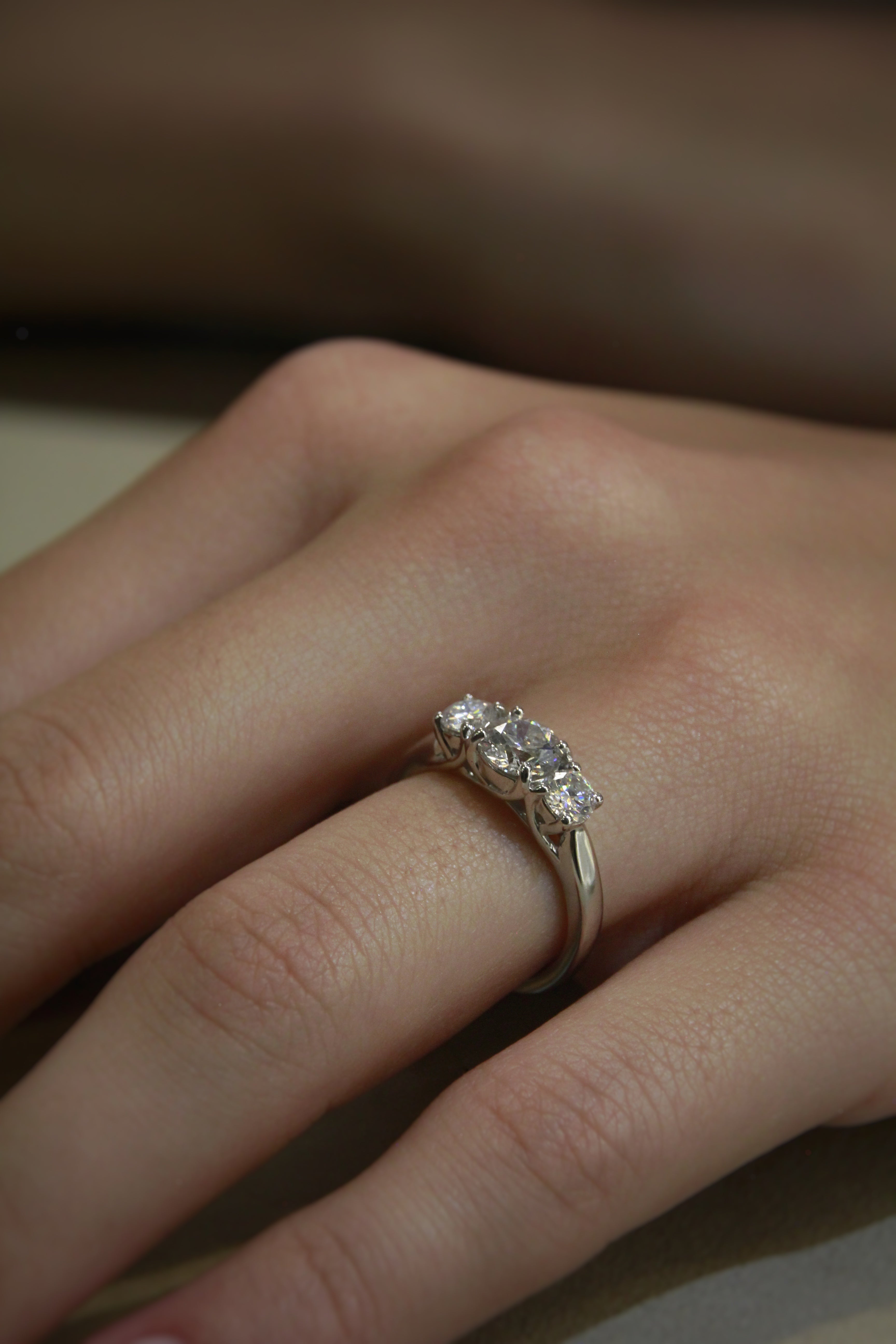 Indulge in timeless elegance with our exquisite 3 diamonds ring. Center Diamond 0.85 ct and 0.25 ct Diamonds on the side.