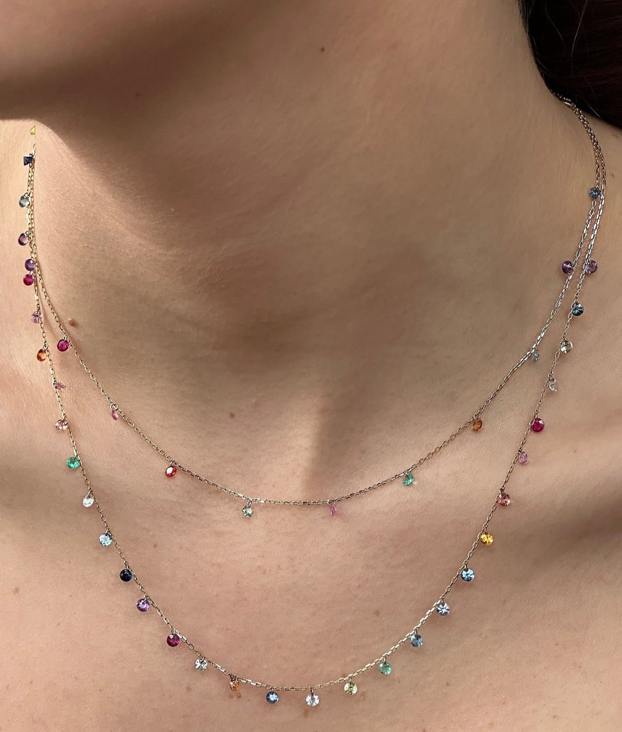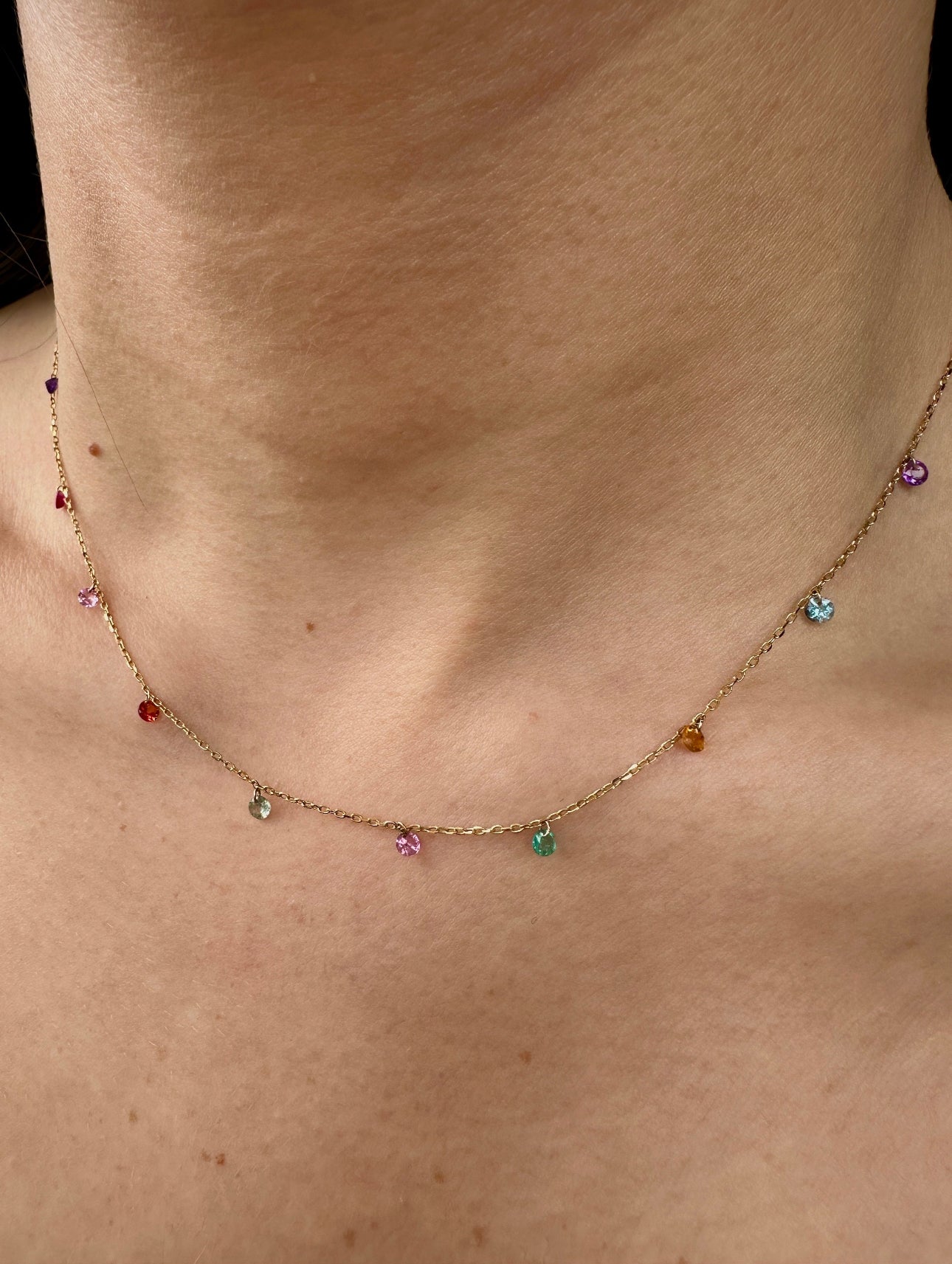 14k Gold Set Free Bare Floating Sapphires Necklace