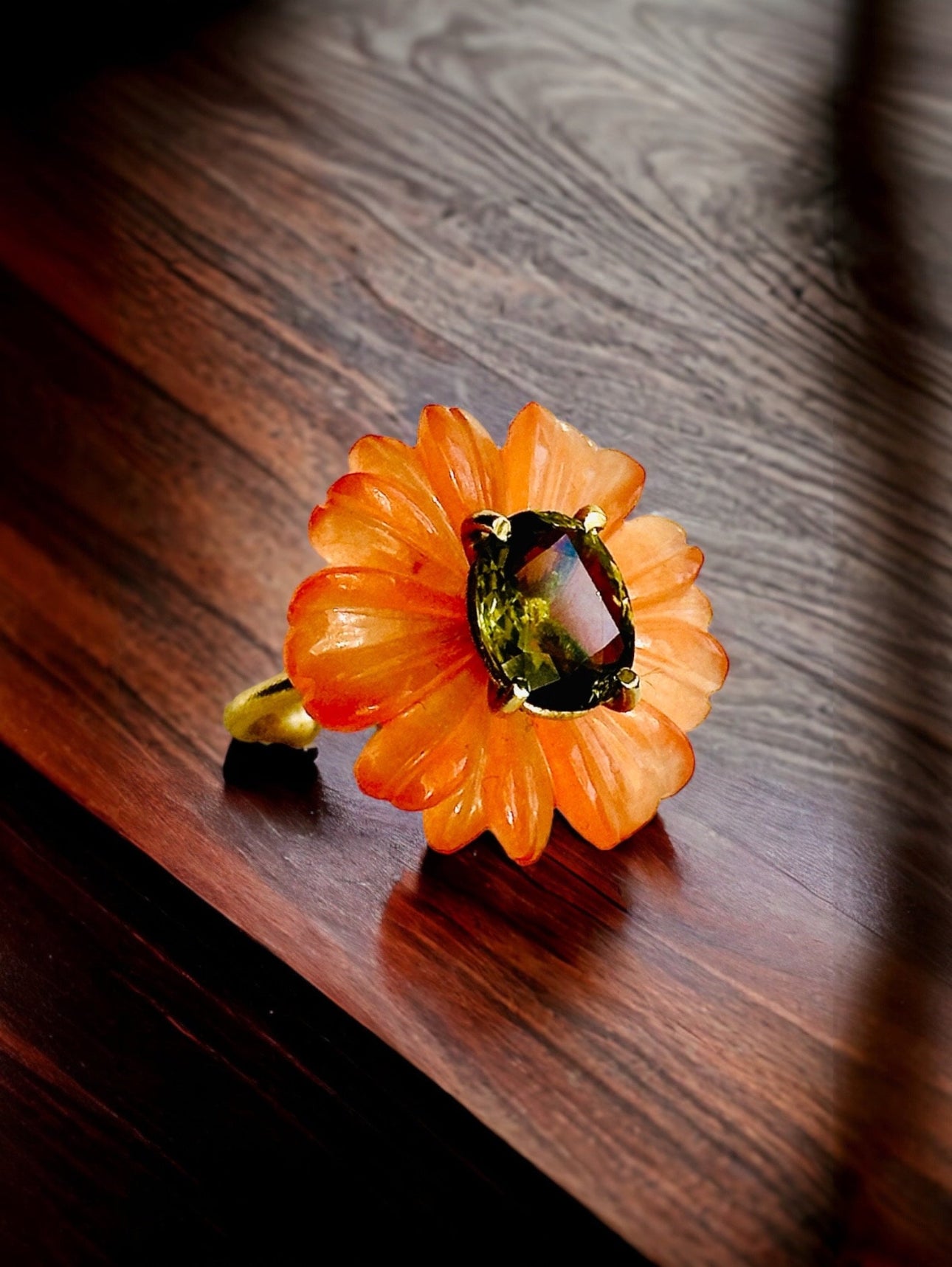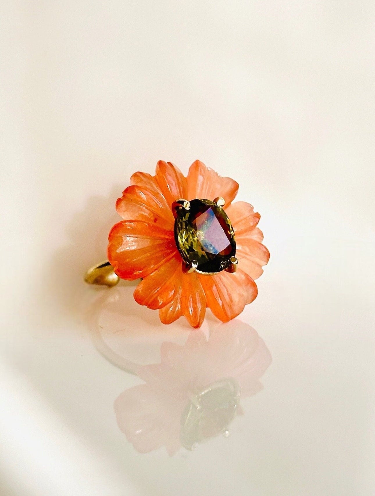 Blooming Orange-Pink Jade Green Tourmaline Ring