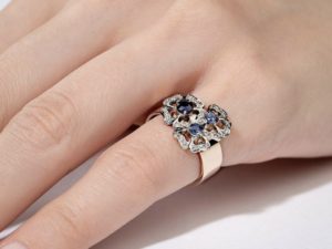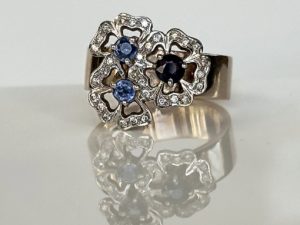 Blossoms Diamonds Blue Sapphires Wide Band Ring