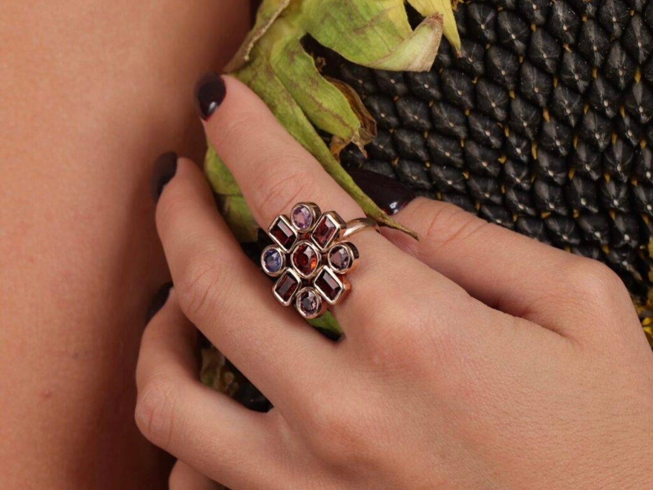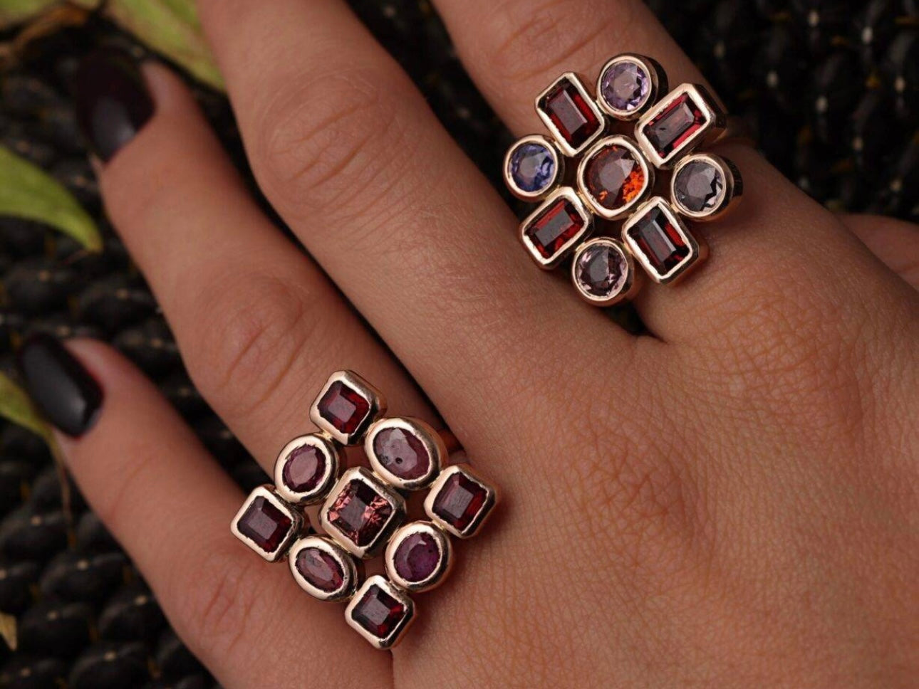 With it’s eye-catching color palette and regal size this ring from our Dancing Gems collection makes a statement. A shimmering royal red- purple hues of sapphires, Rhodolite garnets and tourmaline will forever be a metaphor of energy, passion and power.