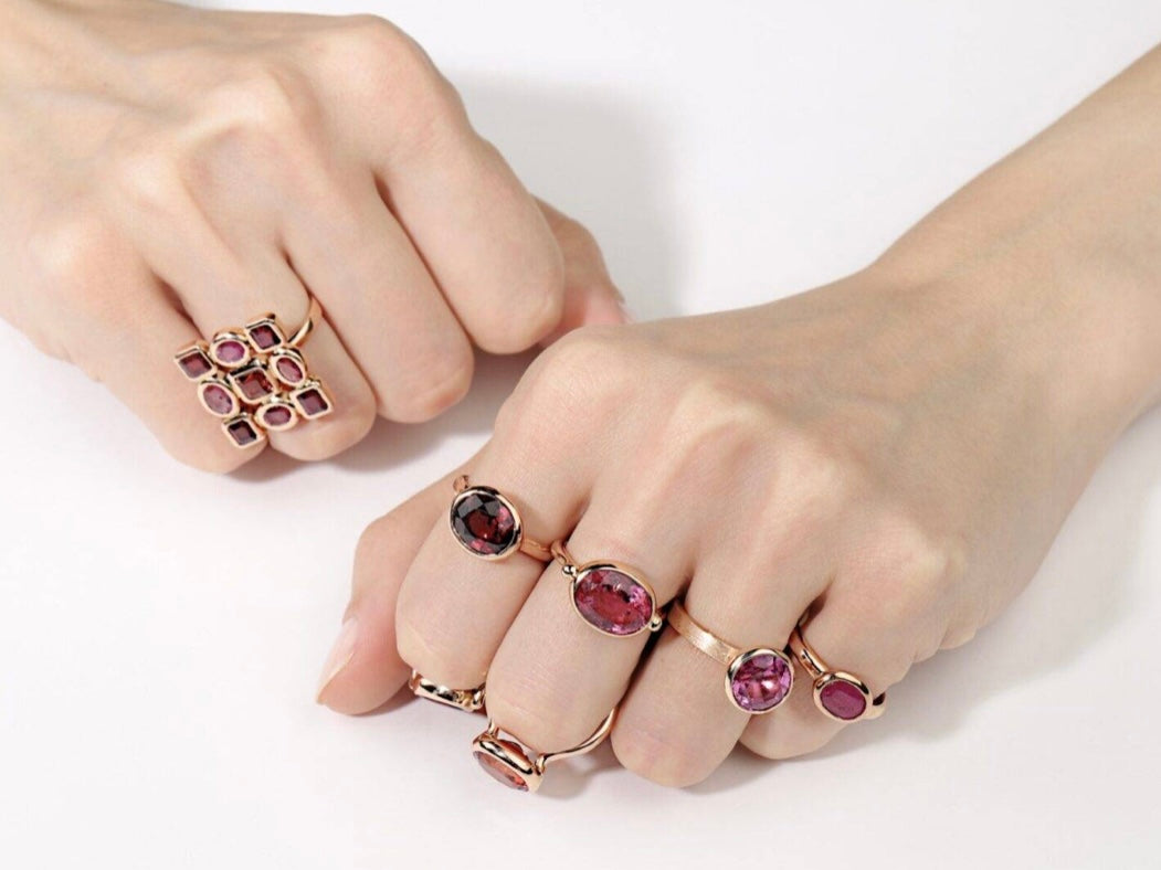 This faceted ruby ring exudes a casual elegance. With it’s minimal design wear it solo or ensemble it with others for a subtle, yet feminine sophistication. Through the ages, the ruby has represented nobility, purity, and passion. It is known as a protective stone that can bring happiness and passion into the life of the wearer. So will this ring do.