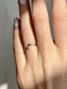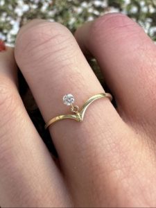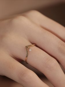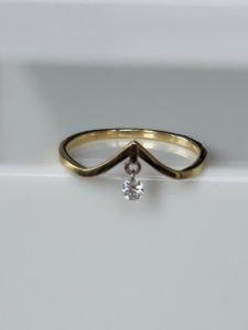 Solid Gold 14k, 18k arquise band ring with floating diamond