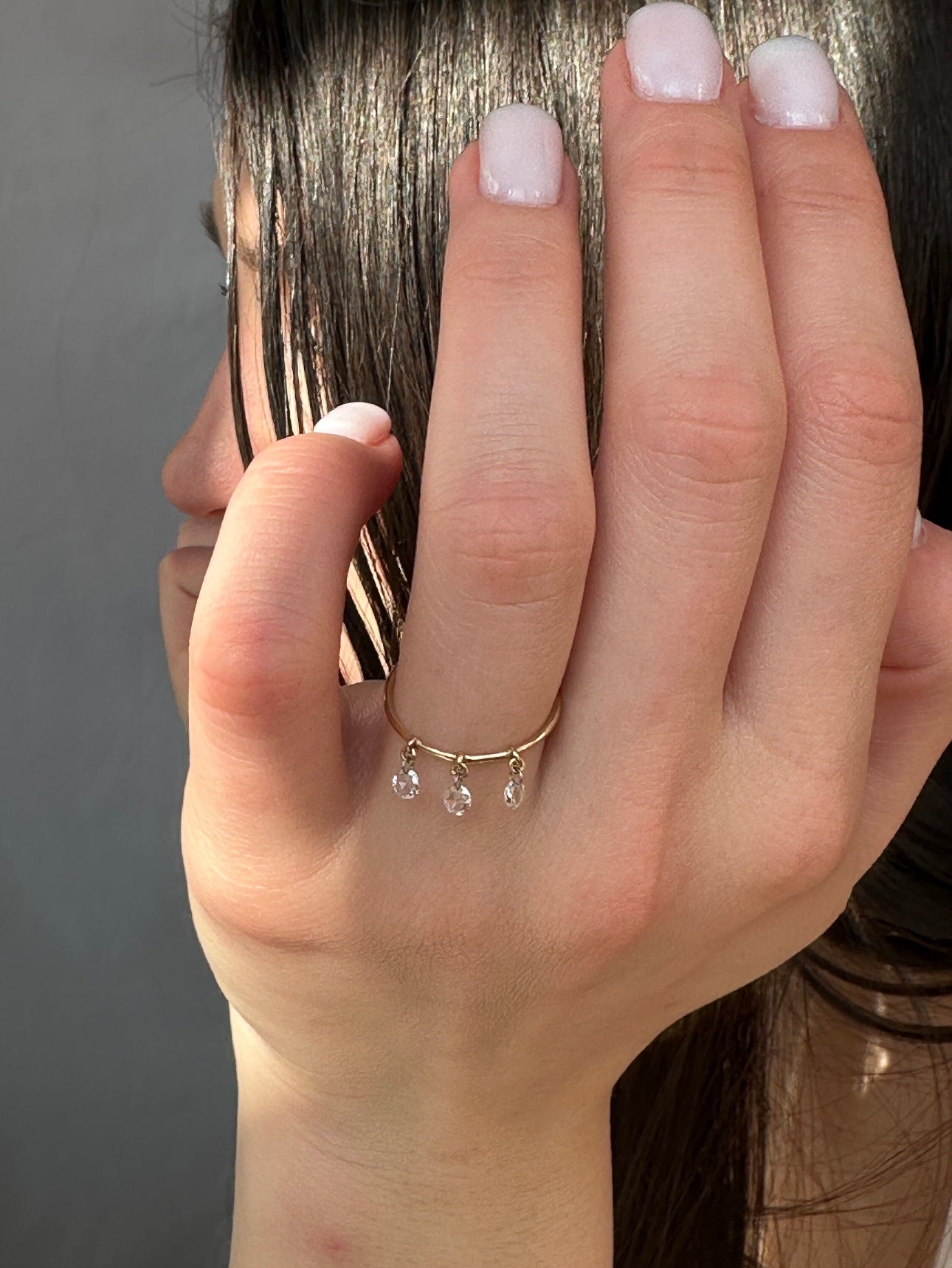 3 beautiful vintage era rose cut diamonds to meet the simple, modern design to create a delicate yet striking ring.