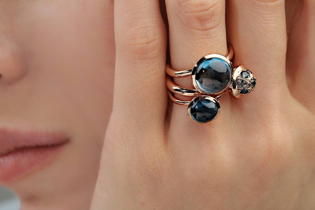 Inspired by my great grandmother’s sphere ring this modern take of cocktail ring is captivating with its glowing London blue topaz cabochon. Glow with it for an iconic, style defining presence. It is equally perfect for casual to formal look.