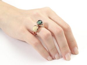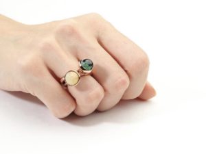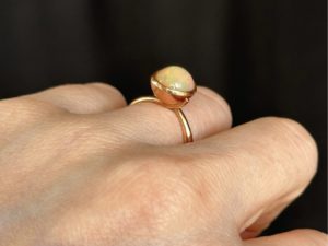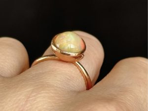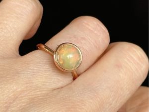 Inspired by my great grandmother’s sphere ring this irridescent opal ring with the flashes of neon green, orange, red and blue is equaly perfect for casual to formal look. Glow with it for an iconic,style defining presence.