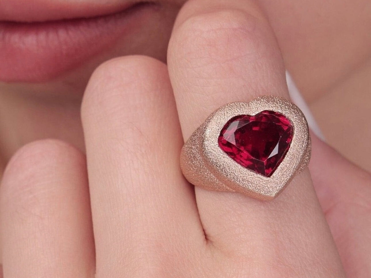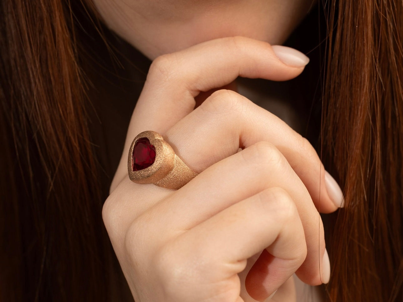 With its sentimental and sweet vibe this ruby signet ring is a modern take on the universal symbol of love.