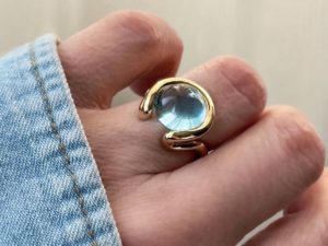 Bold, modern and striking in its distinctive design and craftsmanship,this Swiss blue round cabochon topaz ring is a contemporary alternative to the traditional cocktail ring. Slip this ring on your finger when you need a bold, statement-making piece of jewelry with just a hint of color.